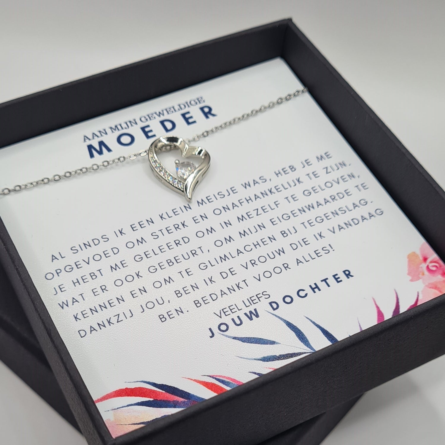 Jouw moeder heeft jou geleerd om sterk en onafhankelijk te zijn. Om in jezelf te geloven. Geef haar een glimlach terug met deze prachtige Forever Love ketting inclusief mooie giftcard. Bedank haar voor alles wat zij jou heeft geleerd met dit unieke cadeau.