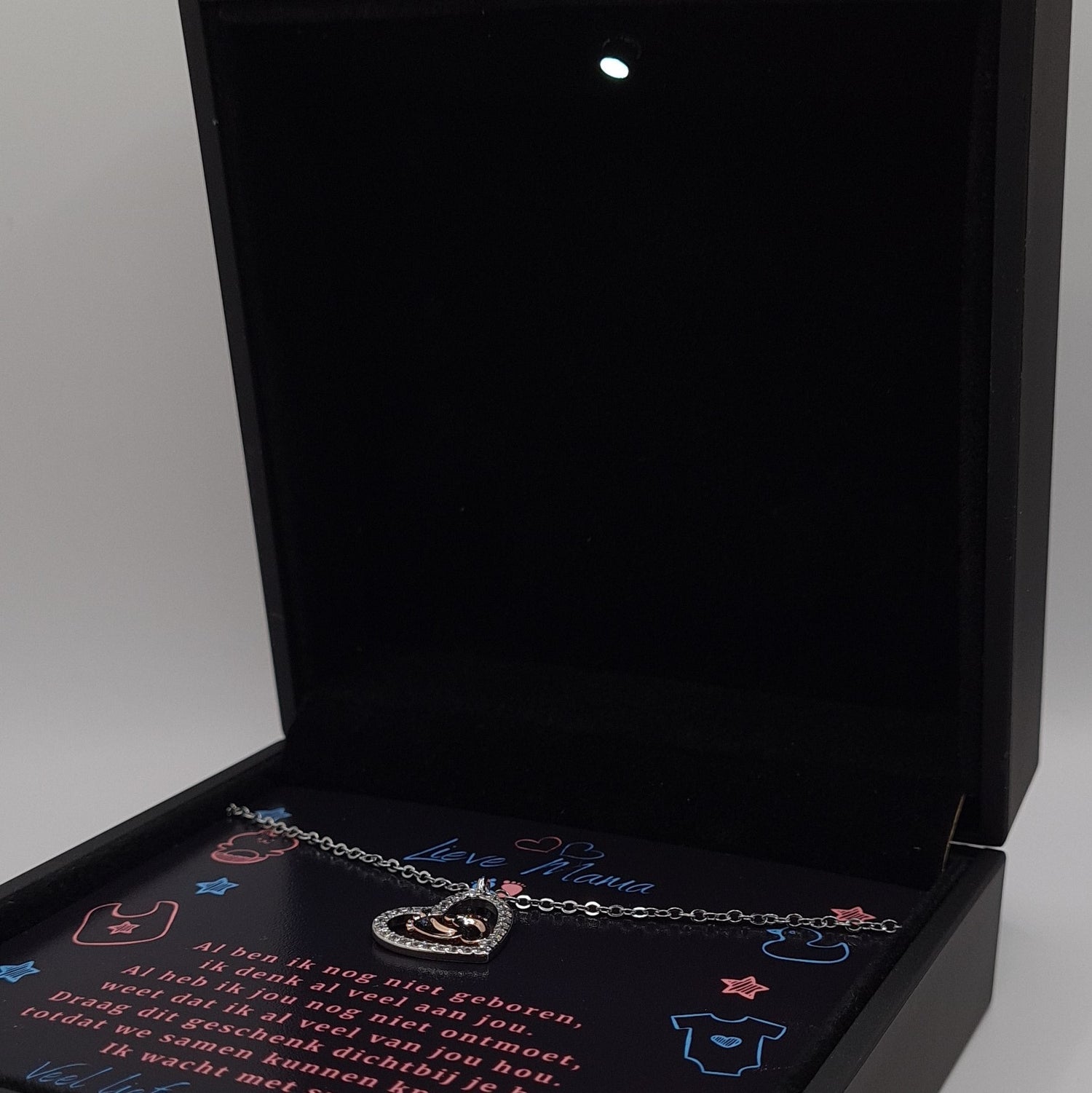 Om er een magisch moment van te maken, zit de ketting in een unieke LED cadeauverpakking. Een warme gift card gaat mee in de doos, klaar om jouw liefde en beste wensen uit te drukken. 💌